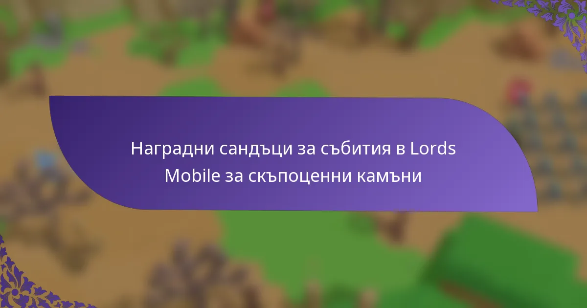 Кутии с награди от събития в Lords Mobile са специални предмети, които се печелят чрез различни събития в играта, предлагащи на играчите ценни награди, като скъпоценни камъни, които са съществени за подобряване на игровото изживяване. Чрез участие в тези събития и изпълнение на специфични задачи в определен срок, играчите могат да отключат тези кутии и да се насладят на уникални награди, съобразени с предизвикателствата на всяко събитие.